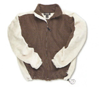 Full zip with contrasting split body and inside collar. Elastic cuffs. Side pockets with brush lining. Elastic shockcord and toggle waist.
